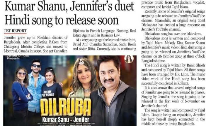 Music has been part of my life since childhood. I grew up surrounded by rhythm and melody, inspired by the rich traditions of Bangladeshi music. In 2023, I had the honor of performing the duet “Dilruba” with Bollywood legend Kumar Sanu — a milestone that connected my Bangladeshi roots with global audiences.